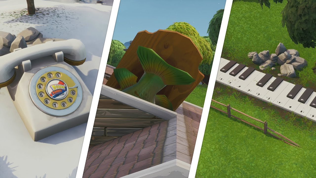 Fortnite oversized phone big piano and giant dancing fish trophy locations map. Fortnites oversized phone big piano and giant fish trophy locations for season 9 week 2 challenge.